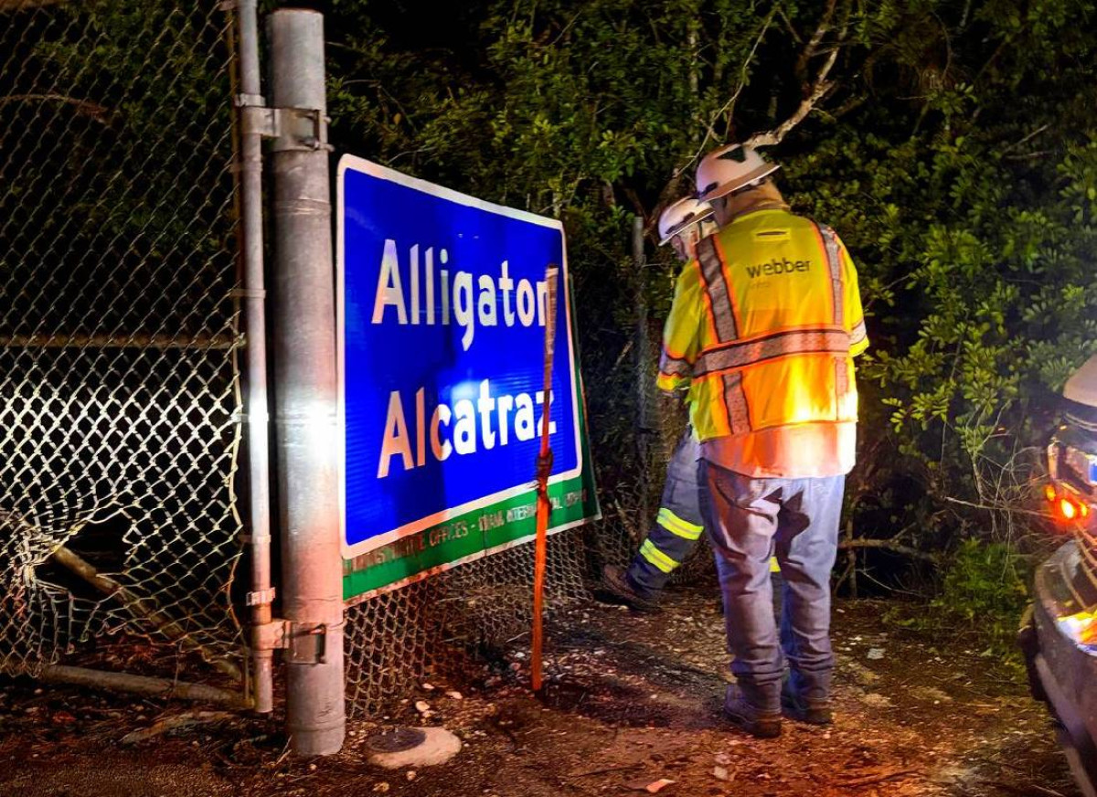השם הרשמי של המתקן הפך לעובדה ביום רביעי, כאשר שני פועלים הציבו שלט כחול גדול הכותב "אלקטרז התנינים" מעל השלט הישן "שדה התעופה המעבר של דייד-קולייר" שהדריך אנשים לשדה התעופה במשך שנים.