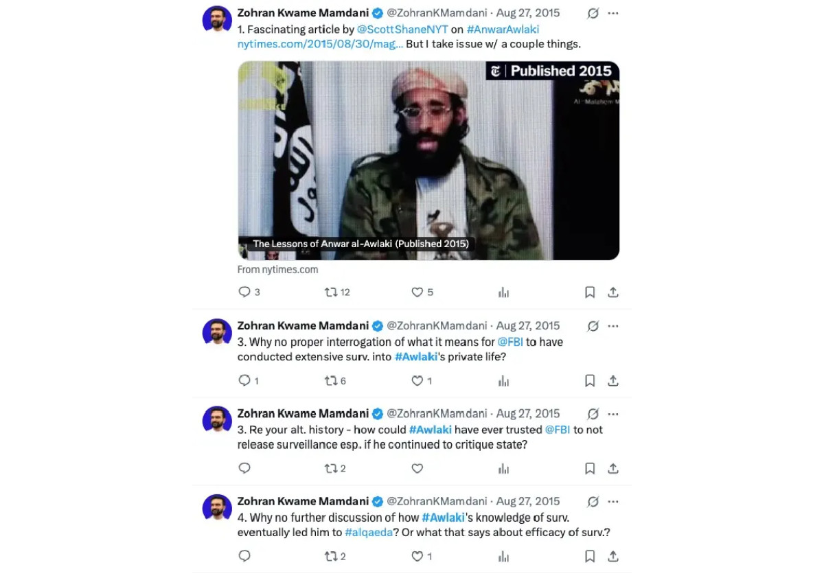 התגובות לא איחרו לבוא. פיטר קינג, חבר קונגרס לשעבר, אמר: "להאשים את ארצות הברית באל-עולקי זה כמו להאשים את היהודים בהיטלר. זו חרפה גמורה". גם קצין הכבאות בדימוס ג’ים מקקאפרי, שאיבד את גיסו באירועי 11 בספטמבר, תקף: "הציוצים שלו פוגעניים מאוד לקורבנות ולמשפחותיהם. ממדאני מאשים את ה־FBI? זו פשוט טענה מגוחכת". לדבריו, עצם העובדה שמועמד כזה הוא הפייבוריט בבחירות לראשות העיר היא "מפחידה".