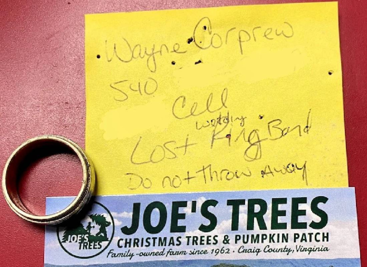 כאשר קורפרו טען את העץ למשאית הפורד F-350 שלו, הוא שם לב שטבעת הנישואים מזהב צהוב ולבן נעלמה מהאצבע שלו.