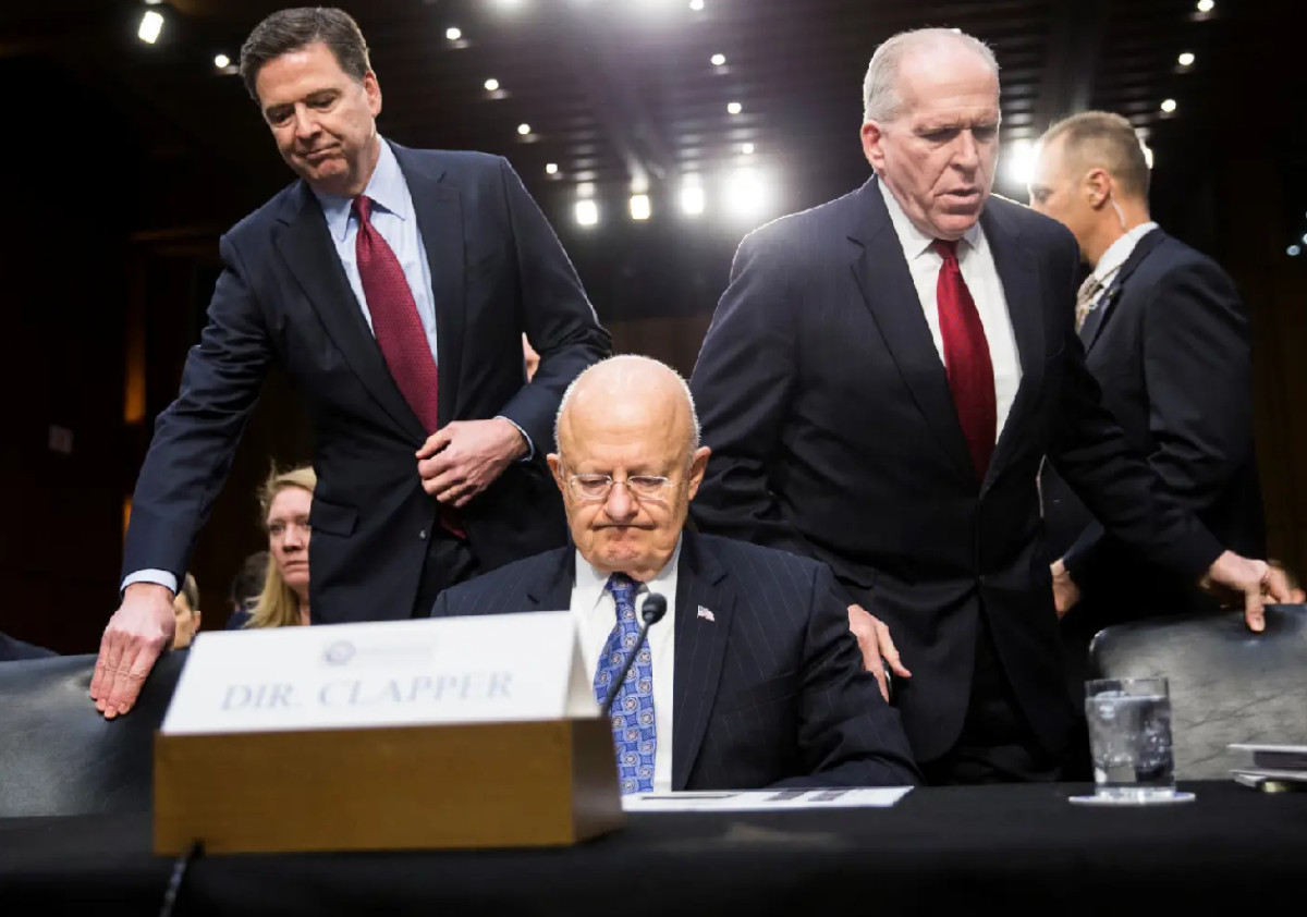 ראש ה־CIA לשעבר ג'ון ברנן (ימין) וראש ה־FBI לשעבר ג'יימס קומי (שמאל)