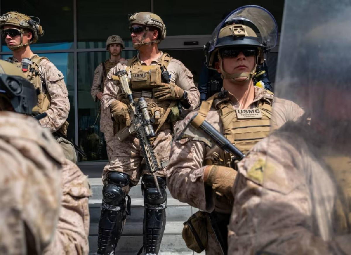 החיילים, שכללו כ-700 נחתים וכ-4,000 חברי המשמר הלאומי של קליפורניה, נשלחו למקום ביוני עם משימה להגן על מבנים פדרליים. אולם המציאות בשטח הייתה שונה לחלוטין - רוב החיילים נותרו חסרי פעילות משמעותית, כאשר נחת אחד אמר ללוס אנג'לס טיימס שאין "הרבה מה לעשות".