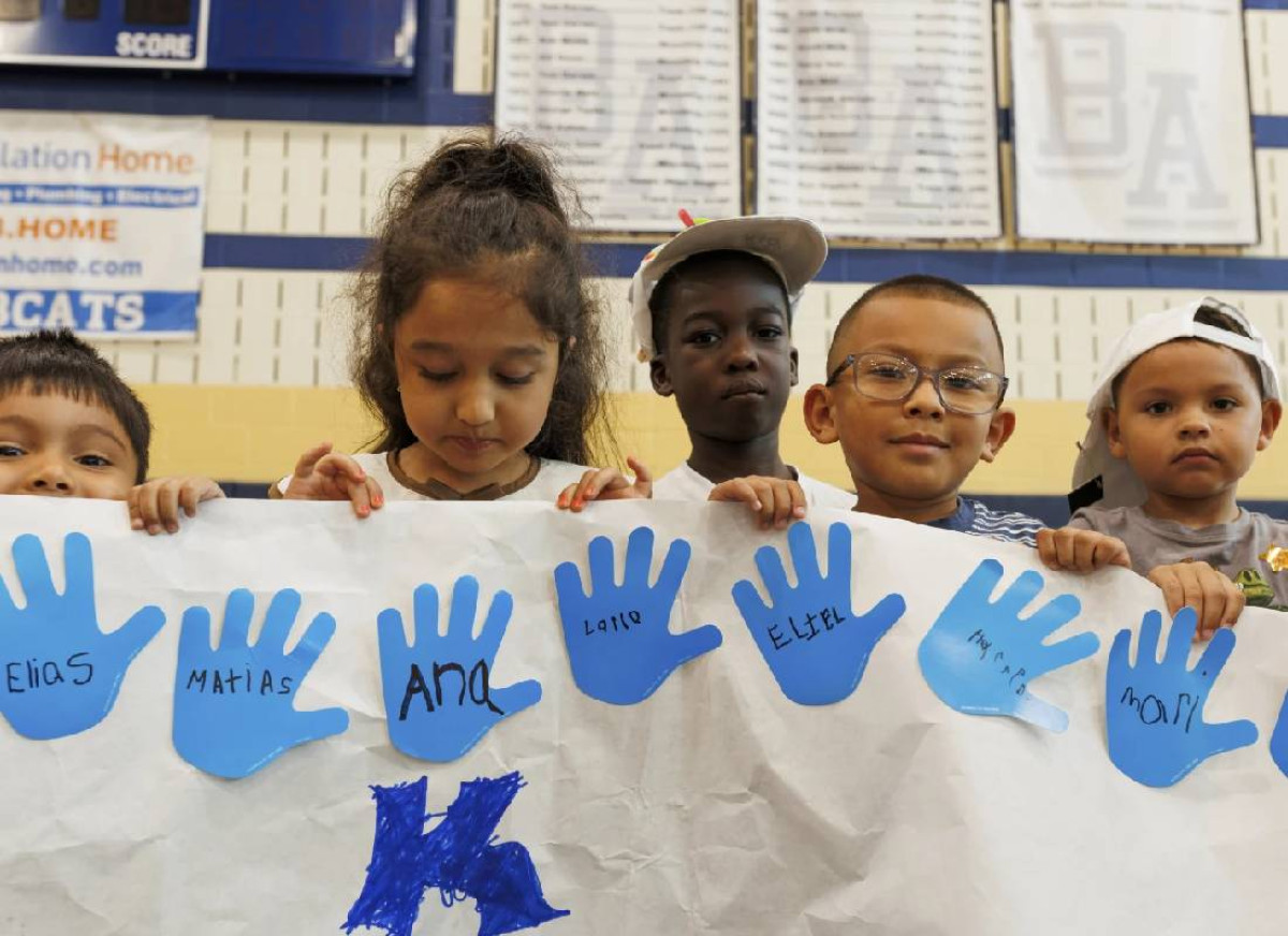 ביום חמישי, יותר מ-350 ילדים מילאו את הקומה השנייה של בית הספר התיכון בל איר ביום השני לאחרון של מחנה הקיץ. לומדים צעירים התקהלו סביב גלגל האלפבית, נדחפו זה בזה כדי ללחוץ על כל כפתור האות כשחשבו על מאכלים המתחילים באותיות מא' עד ת'.