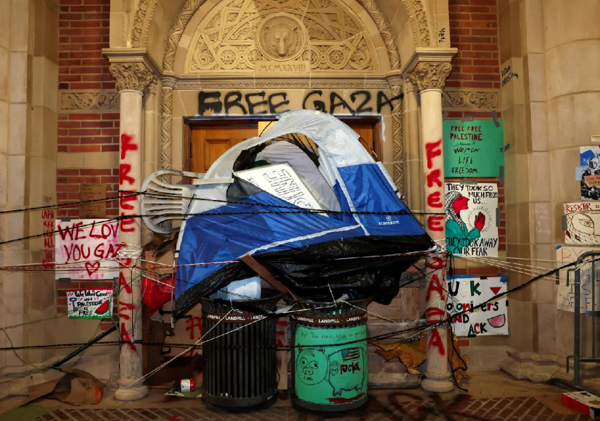 לפי פרטי התביעה, מאבטחים שמרו על מתחם האוהלים, והכניסו אליו רק מי שהציג צמיד מיוחד. חברי הקהילה היהודית של UCLA לא הורשו להיכנס, והמפגינים השתמשו במחסומי אופניים כדי להסתגר משאר הקמפוס.