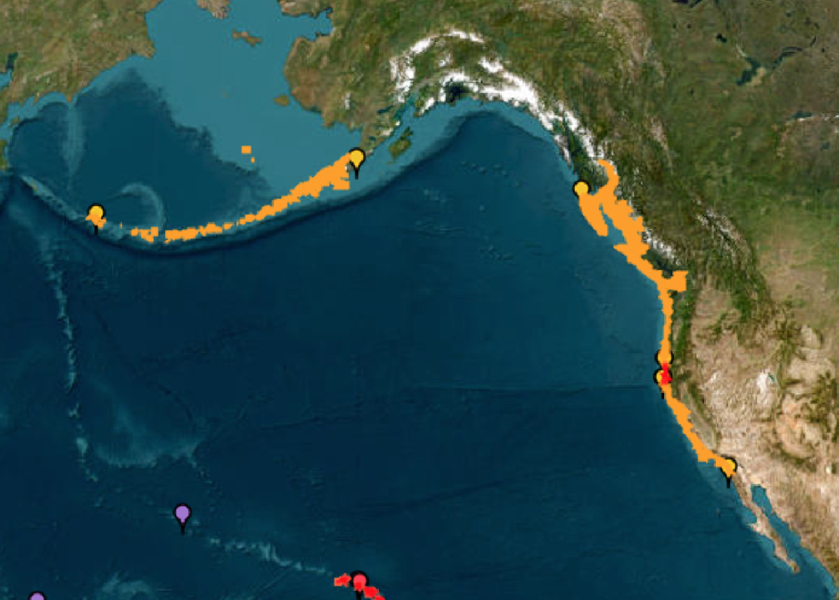 בקליפורניה, האזורים שהושפעו ביותר הם מחוזות דל נורטה והמבולדט שבצפון המדינה. בעיר קרסנט סיטי תועדו גלים בגובה 3.6 רגל (כמטר ועשרה ס"מ), והחשש הוא כי גלים גבוהים יותר, עד חמישה רגל, עשויים להכות בעת השפל. "לא מדובר באירוע כמו של 1964 שישמיד כמה רחובות בעיר", הבהיר מנכ"ל העירייה אריק ווייר, "אבל מדובר באירוע שיגרום להפרעה רבה בים, זרמים חזקים. אנחנו מבקשים מהציבור להתרחק מהחופים, משפכי נהרות ואזורים נמוכים".