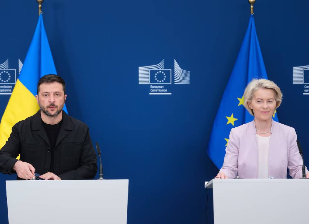 נשיאת הנציבות האירופית אורסולה פון דר ליין לצידו של זלנסקי