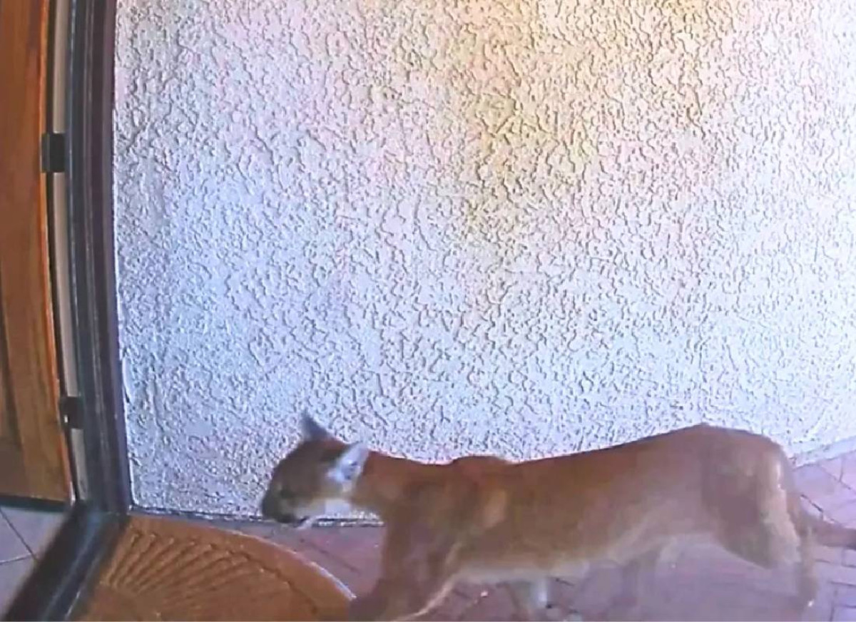 השעה הייתה בדיוק 13:00 ביום שבת, מספר ג'ף טני, כאשר מצלמות הביטחון של הבית תיעדו את הרגע הדרמטי שבו החתול הגדול צעד ישר דרך הדלת הקדמית הפתוחה אל תוך הבית.