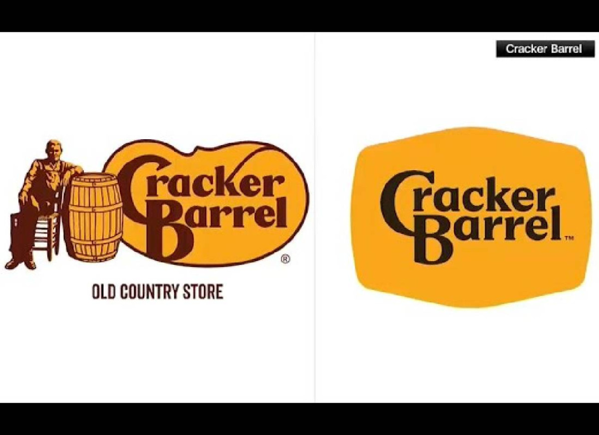 הלוגו הישן של חברת Cracker Barrel (משמאל) והלוגו החדש שנחשף ועורר סערה (מימין).