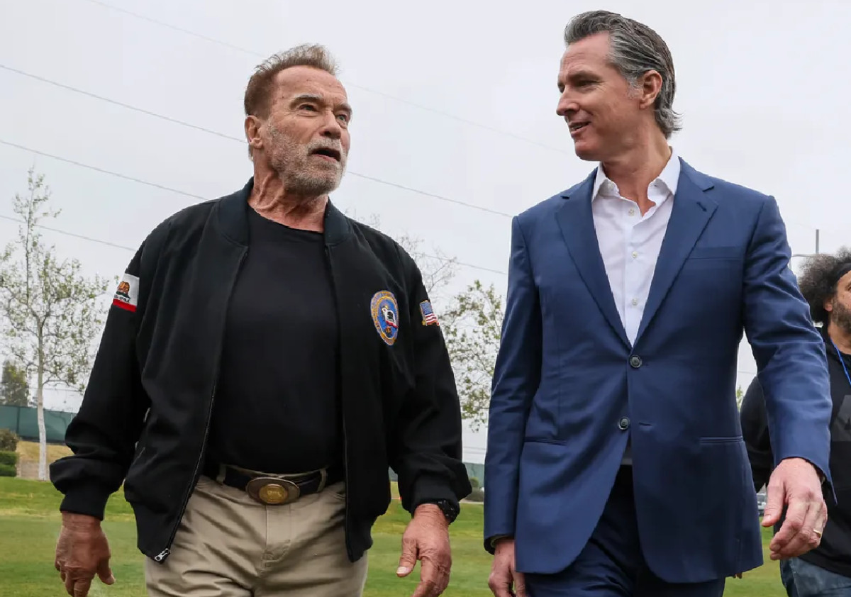 מושל קליפורניה לשעבר ארנולד שוורצנגר והמושל המכהן, גווין ניוסום
