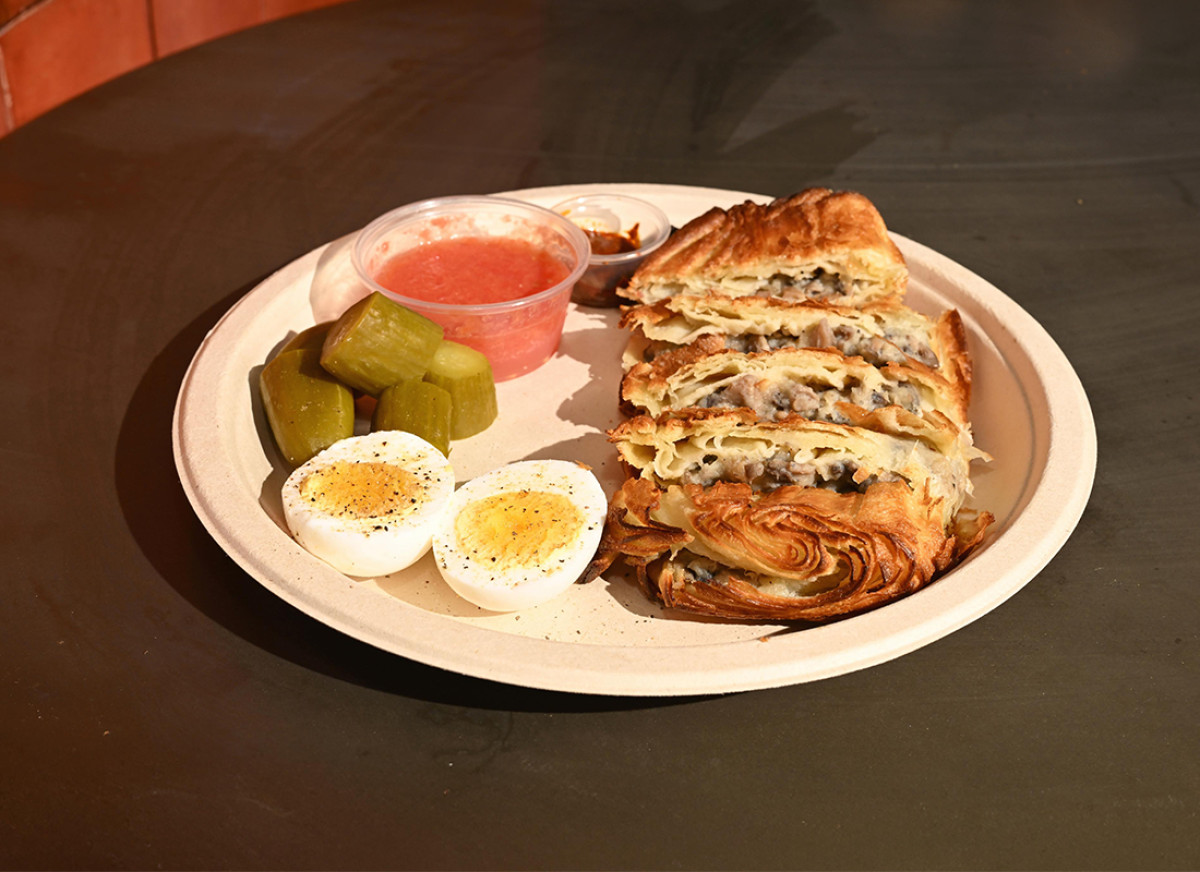 עוזי אוהב לחדש והתפריט הנוכחי כולל ווריאציות מעניינות ומוצלחות של מנות מבוססות בורקס עם יצירתיות קולינרית מתפרצת לכל עבר. ניסיתי את ספיישל בוקר טוסט: בורקס פתוח, עם ממרח זיתים מעליו (שמוכן במקום), מכוסה שכבה נדיבה של סלט ביצים טרי שנעשה כל בוקר, עירית, ו-Everything but the borekas seasoning- תבלין מיוחד בהשראת Everything but the bagel המוכר של טריידר ג'ו.