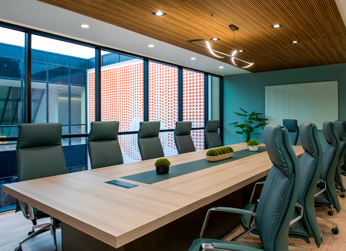 העיצוב הפנימי, שגובש יד ביד עם חברת Mia Tessa, שוזר יחד חומרים טבעיים עם קירות זכוכית וחלונות ענק המחדירים לחללים שפע של אור יום. שילובי הצבעים – בגווני קרם רך וכתום חמים – יוצרים אווירה הרמונית, רגועה ומקצועית, כזו שמזמינה יצירתיות ומגבירה את תחושת הפרודוקטיביות לאורך כל יום העבודה.