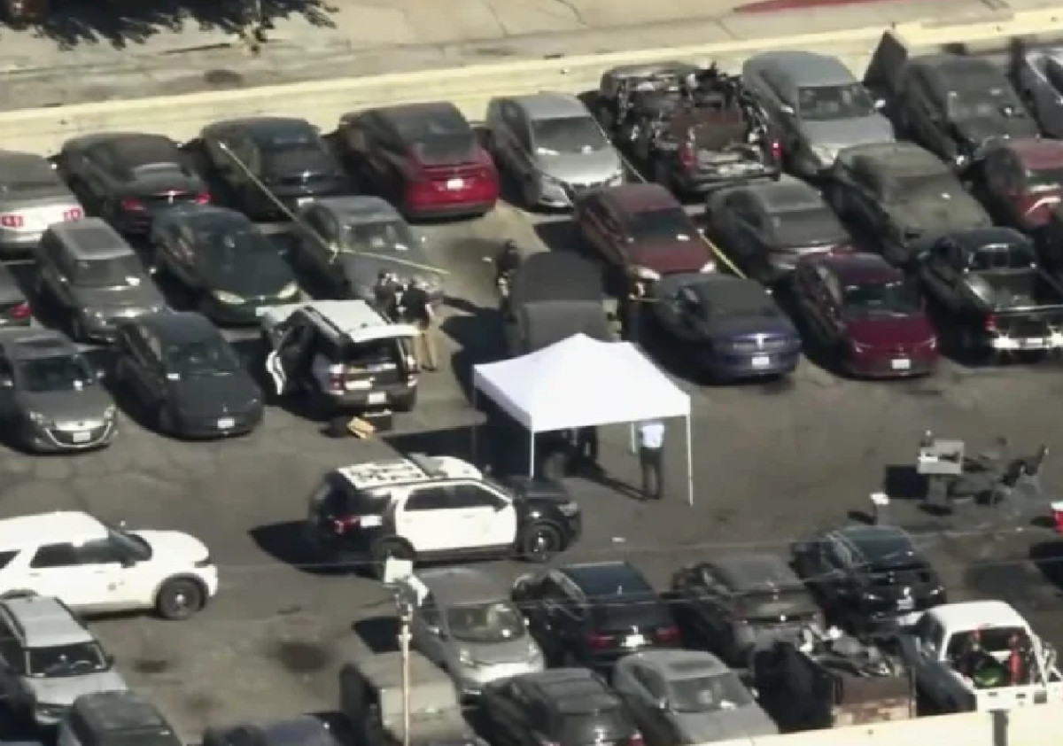 מגרש הגרירה בו אותרה הגופה בתוך תא מטען של טסלה | צילום מתוך דיווח של KTLA