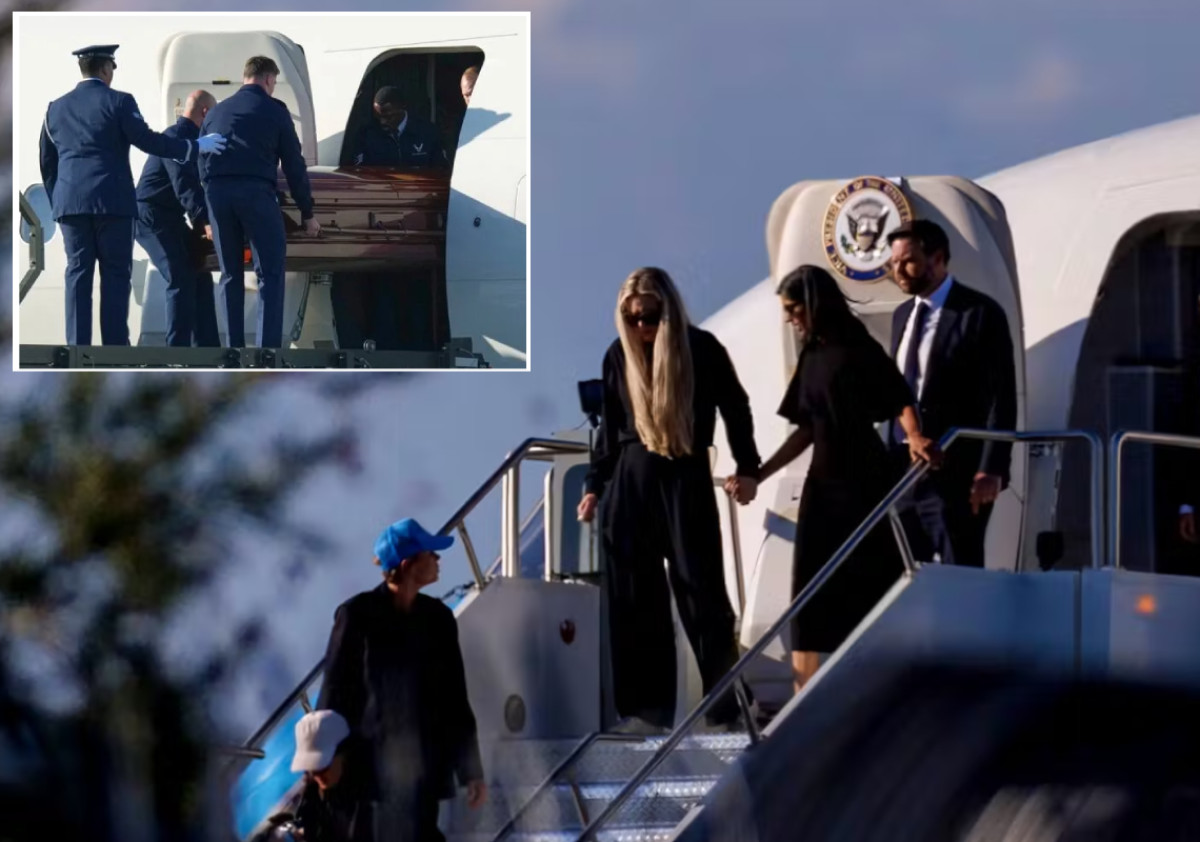 Erika Kirk — Charlie Kirk’s wife — is seen holding hands with Second Lady Usha Vance as they depart Air Force 2.