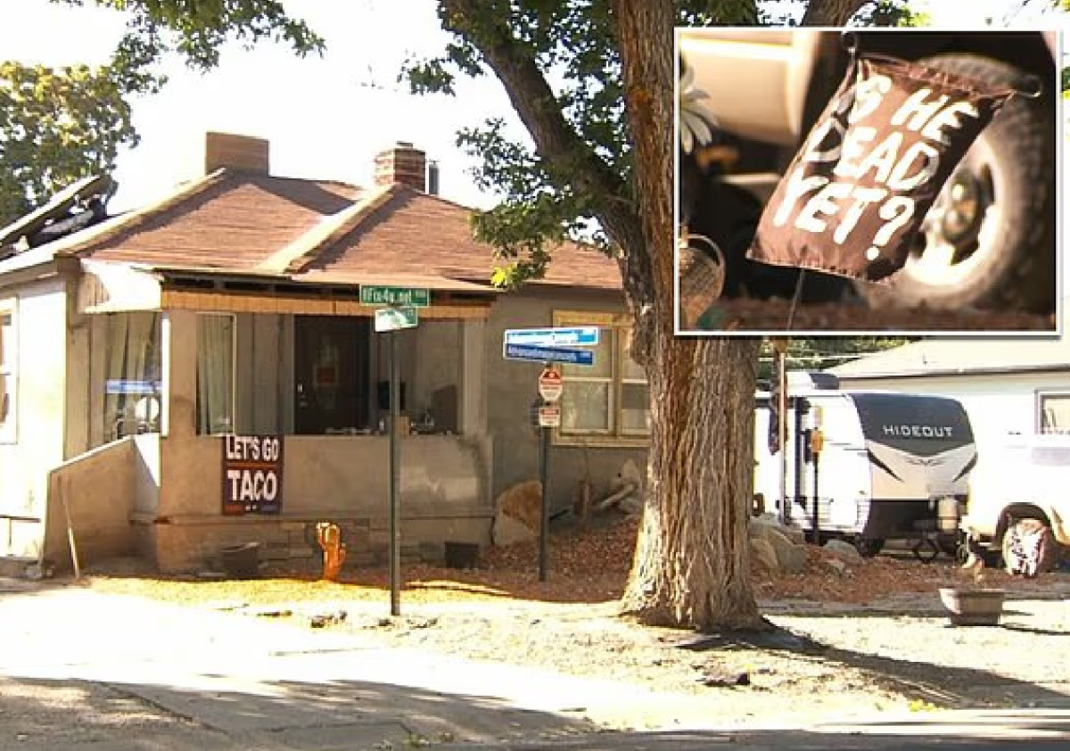 הבית בו התגוררו החשודים, שהציבו שלטים נגד הנשיא טראמפ
