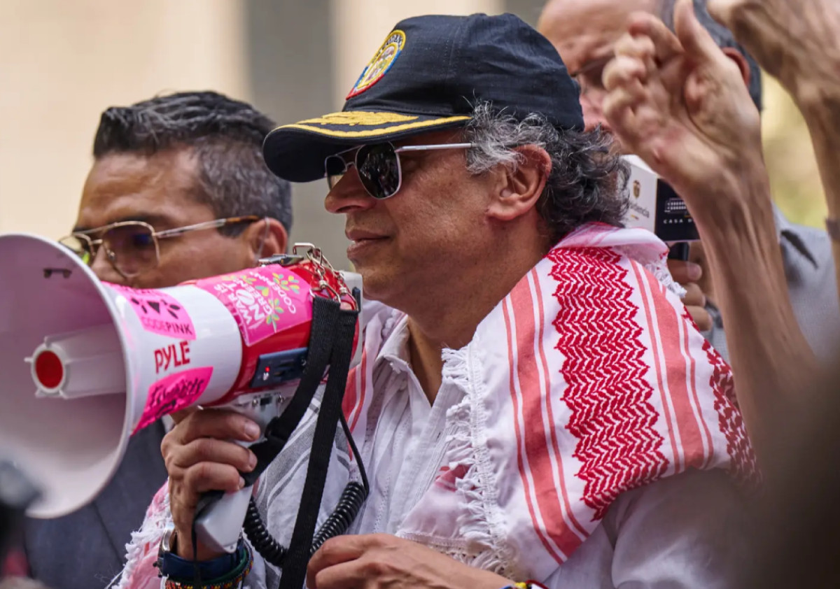 נשיא קולומביה גוסטבו פטרו בהפגנה אנטי-ישראלית מחוץ לעצרת האו"ם בניו יורק