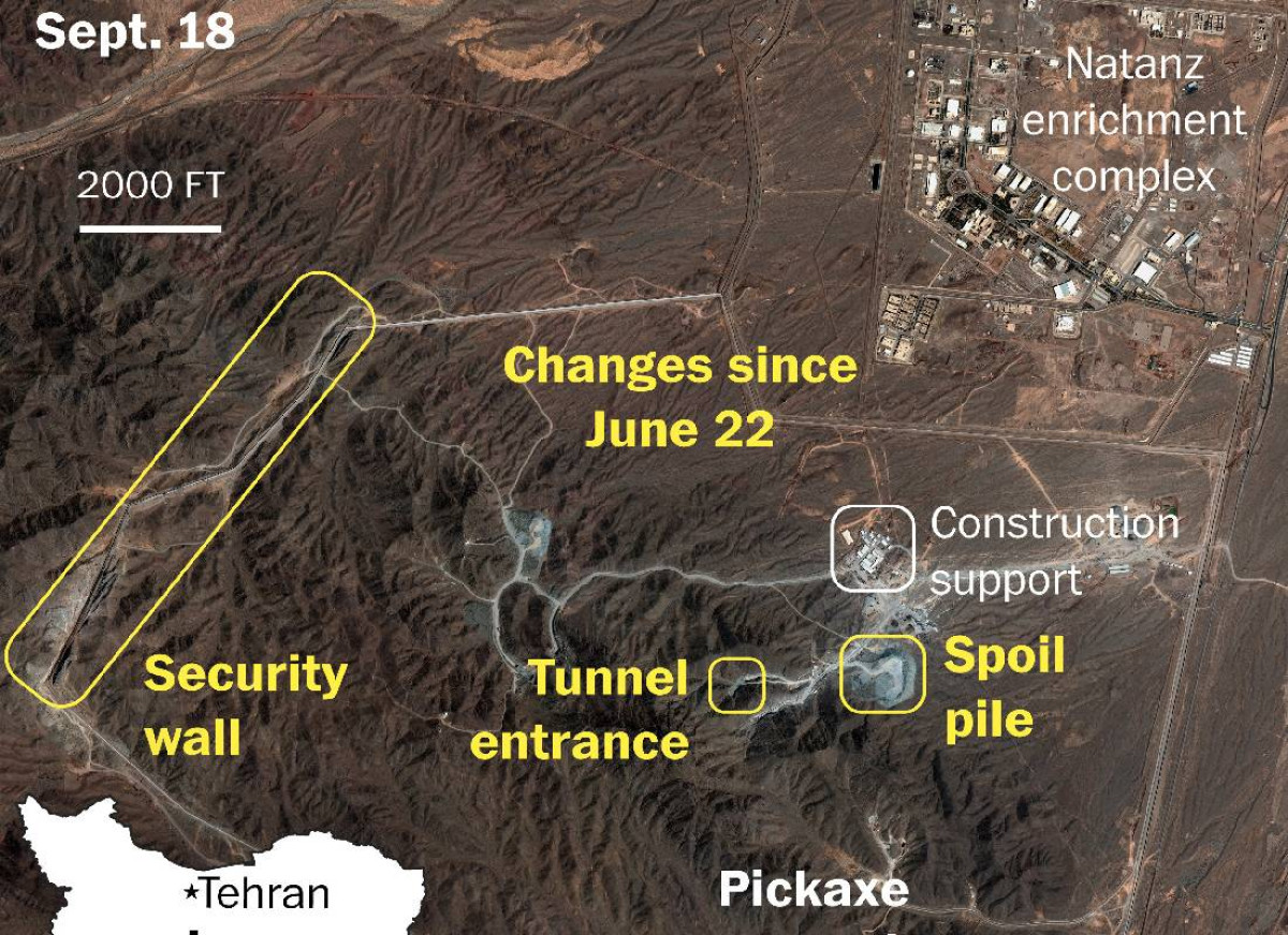 התמונות מראות שכבה מתמשכת של פעילות באתר המוכר בשם כוה-א קולנג גז לה, המכונה "הר הכירכיר", שנמצא כקילומטר דרומית למתקן הגרעין בנתנז שהופצץ ב־22 ביוני. מאז 2020 חופרים במקום מהנדסים עמוק ברכס הרי זגרוס, והעבודות נמשכות למרות התקיפות האוויריות האחרונות.