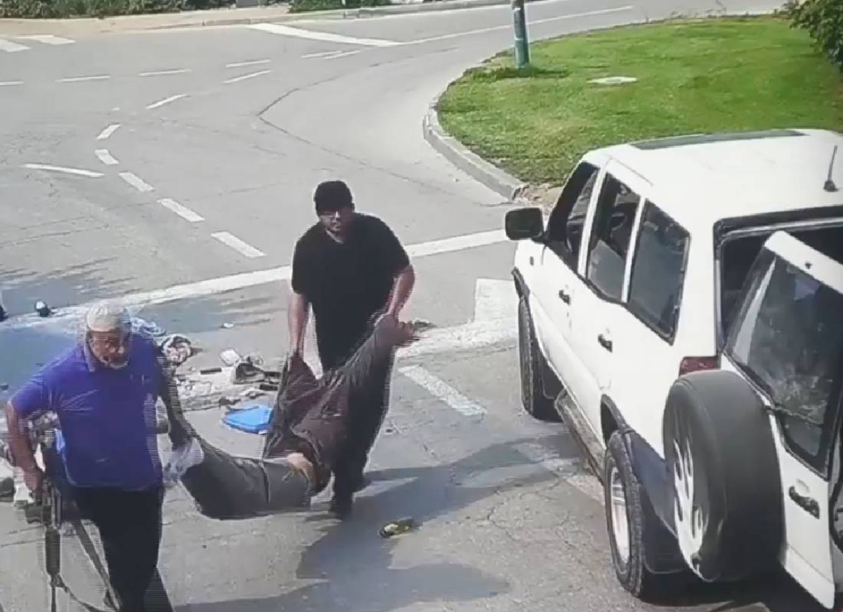 צילום מסך מסרטון המציג עובד אונר"א ליד ג'יפ לבן של האו"ם, חוטף את גופתו של יונתן סמרנו, שנהרג על ידי מחבלי חמאס ב-7 באוקטובר 2023