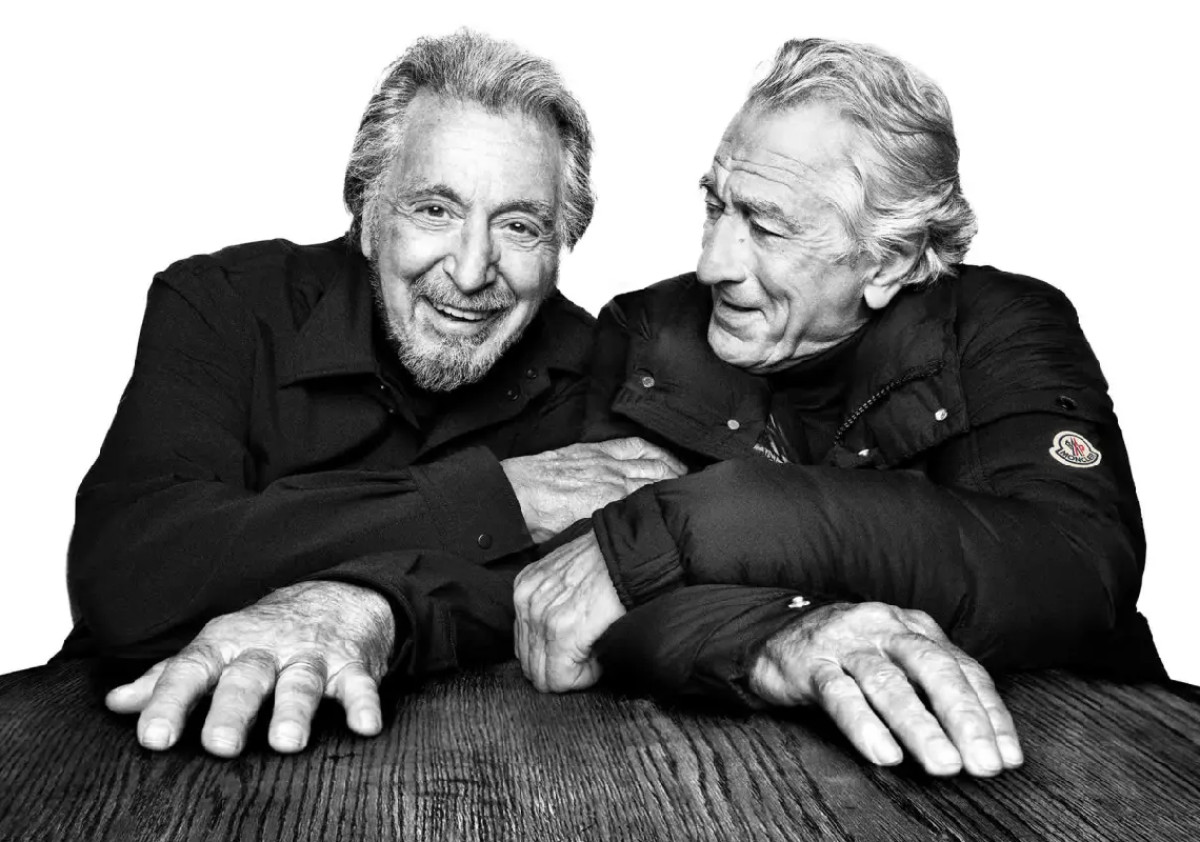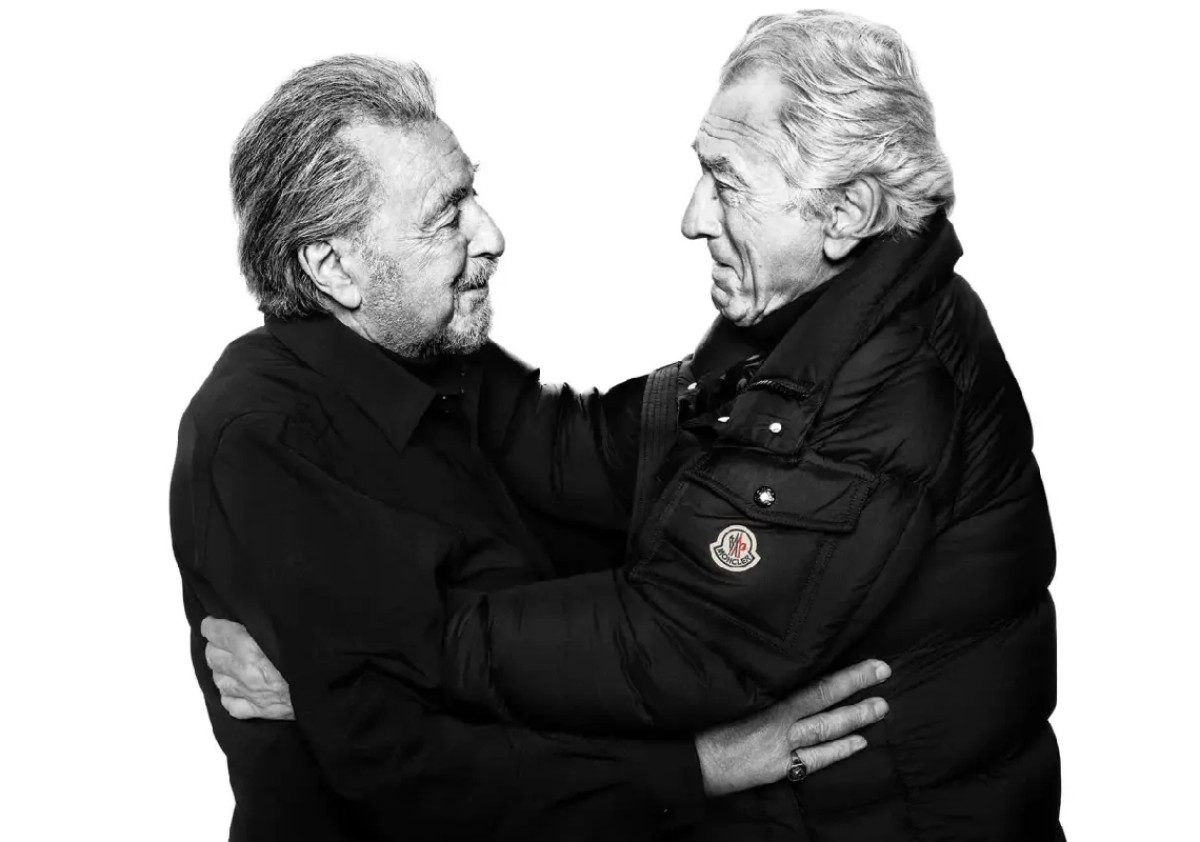 פצ'ינו ודה נירו אמנם הופיעו יחד בעבר בכמה סרטים - בהם הסנדק 2 (אם כי לא באותן סצנות), Righteous Kill ו-The Irishman - אך זו הפעם הראשונה שהם נבחרים לשמש יחד כפנים של מותג אופנה. מונקלר מסרה כי היא "גאה לשתף פעולה עם שני החברים הטובים האלה, ושני ענקים של הקולנוע, כדי לחלוק את האמונה המתמשכת שלה בחום האנושי".