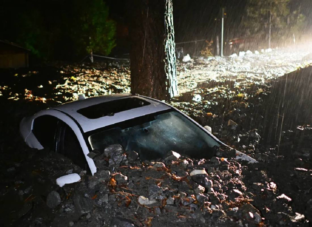 ביום רביעי נרשמו ברייטווד גשמים כבדים ורוחות חזקות, שהציפו כבישים, הפילו קווי חשמל והציפו כלי רכב. לוחמי האש במחוז סן ברנרדינו מסרו כי חילצו אנשים שנלכדו במכוניות כאשר בוץ ופסולת גלשו במורד הכביש המוביל לעיירה. בבוקר חג המולד נראו רחובות מכוסים בסלעים, ענפים ובוץ סמיך. בהיעדר חשמל, תחנת דלק מקומית ובית קפה שעבדו על גנרטורים הפכו לנקודות מפגש מאולתרות לתושבים ולמבקרים.