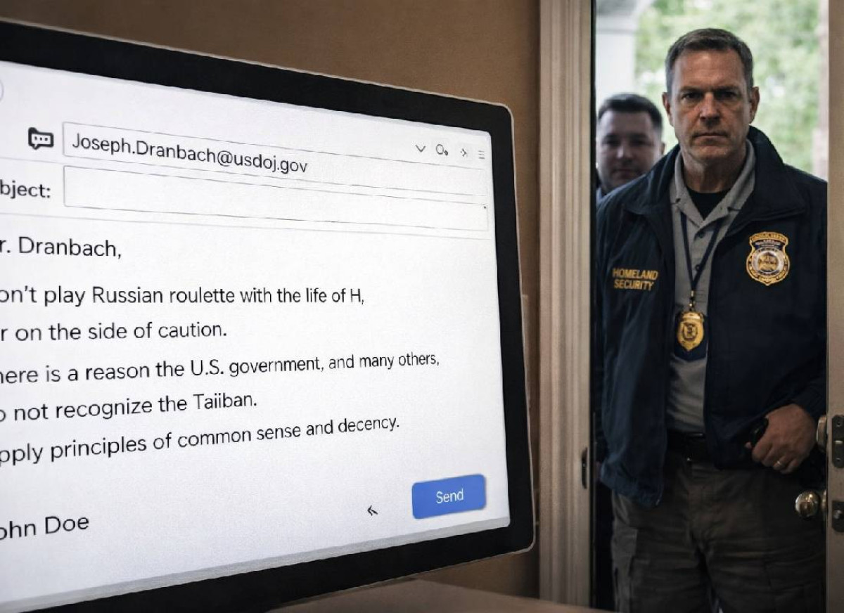 “מר דרנבך, אל תשחק רולטה רוסית עם חייו של ה’, טעה לצד הזהירות. יש סיבה שממשלת ארצות הברית וממשלות רבות אחרות אינן מכירות בטליבאן. הפעל שיקול דעת והגינות.” ארבעה משפטים. זה הכול. ג’ון חתם בשמו המלא ולחץ על “שלח”. הוא קיווה שמילותיו יעוררו מחשבה – ולא תכנן ששעות ספורות לאחר מכן יתחיל מסע שיטיל עליו צל של חקירה פדרלית.